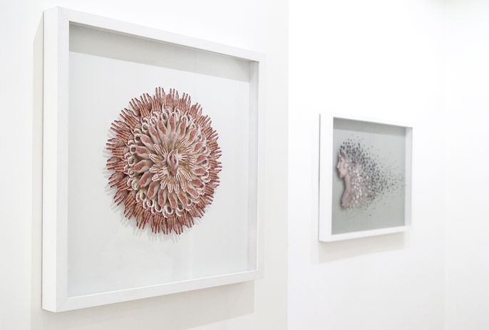 Micaela Lattanzio parte da un’indagine fotografica, rielabora l’immagine da lei realizzata e la rende elemento “pittorico”. Da un minuzioso e attento lavoro che si basa sulla ripetizione del multiplo circolare, arriva alla creazione di un insieme, una nuova prospettiva composta da architetture complesse che avvolgono lo spettatore in suggestioni emotive. Che siano elementi presenti in Natura, come l’inedito dittico Nucleo (2018) o corpi, in essi è proposta una visione introspettiva, uno scenario surreale “fragmentato”, un mosaico che crea una terza dimensione materica e narrativa che va oltre l’estetica e fa riflettere sull’essenza e sull’esplorazione dell’uomo e del suo sentire le forme naturali da cui trae benessere psicofisico .....
