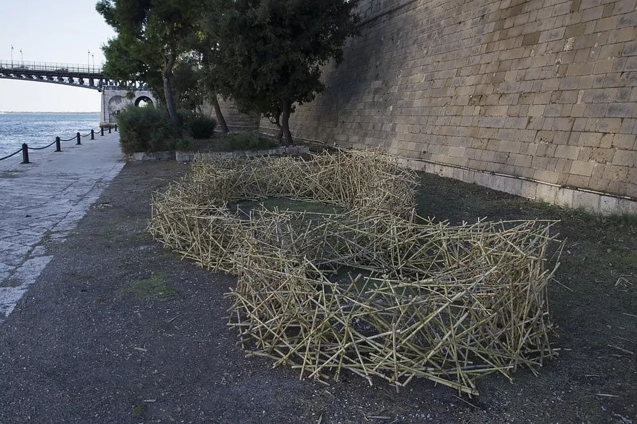 Castello Aragonese – Rebirth/Terzo Paradiso (di Michelangelo Pistoletto) e realizzata da LAS-Land Art Salento. Realizzata da LAS-Land Art Salento. L’opera è cofinanziata da ANCE Taranto, Sistema Edilizia Taranto, Cassa Edile della Provincia Jonica e Formedil CPT Taranto e realizzata in collaborazione con la società di architettura e ingegneria MAS SRL, è una reinterpretazione del celebre simbolo del Manifesto del Terzo Paradiso disegnato dall’artista.